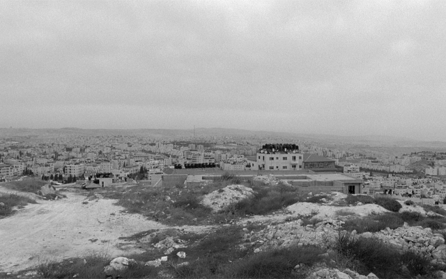 Nir Evron IL, 2011, 5', HD videoThe piece was shot in a built structure located on a hill in north-east Jerusalem, known as 'Tell el-Ful'. Construction work for King Hussein of Jordan's Summer palace started there in 1966 by the royal Jordanian family. The hill was a site of Jordanian-Israeli battles during the Six-Day War (1967) and the area was eventually occupied by Israeli forces. The building of the palace was never completed, and the concrete skeleton remains in Israeli territory until this day. The structure is at 840 meters above sea level and is overlooking Jerusalem's old city, the Israeli settlement Pisgat-Ze'ev, Palestinian Authority areas including the suburbs of Ramallah and almost the whole width of the State of Israel, from the Dead Sea to the Mediterranean. Archaeological excavations have revealed remains, in and around the hill, from several historical periods: the Copper age, the Neo-Babylonian, Hasmonean and Roman periods. Scholars identify the site as Gibeah, in which King Saul built his fortress (1 Samuel 8-31). (Chelouche Gallery)