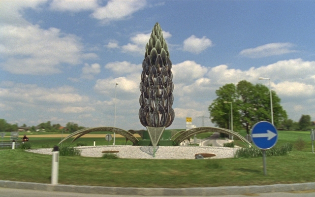 Johann Lurf Kreis Wr. Neustadt , AT, 2011, 5', 35 mmFrom his Vespa, Johann Lurf documents around 100 roundabout islands in Lower Austria, shown in increasingly grotesque segments of only a few seconds – and thus creates something of a catalogue of local building malfunctions. (…) A to A is thereby not only a study of the islands themselves, but above all, of the terror of the mundane, of everyday architectural horrors, which one can count on seeing in the field of traffic islands. (Stefan Grissemann)