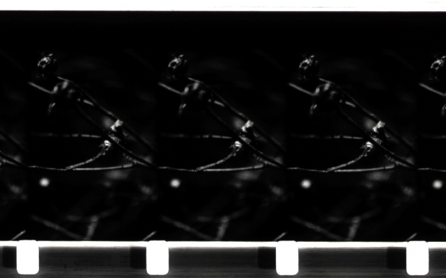 The filmmaker’s garden in winter: skeletal and silvery plants and their supports appear out of the black of the screen in a series of filmic epiphanies.
