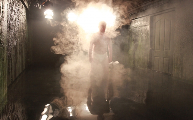 Ho Tzu Nyen SG, 2011, 28', HD videoThe Cloud of Unknowing is titled after a fourteenth century mystical treatise on faith, where the cloud is paradoxically a metaphor for both an impediment to, and reconciliation with, the unknown or the divine experience. Set in a deserted, low-income public housing block in Singapore, the film revolves around eight characters in eight apartments, each in the midst of an activity that brings them into an encounter with a cloud, that alternates between being embodied in a figure, and as a vaporous mist. In the moment of encounter, a shift, transformation or illumination occurs that, as the medieval text counsels, is effected in a direct experience of the senses, instead of being understood with the mind.