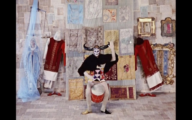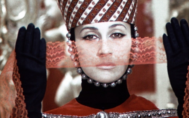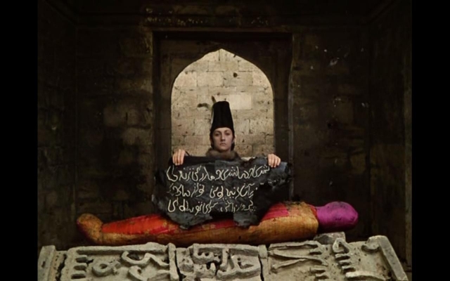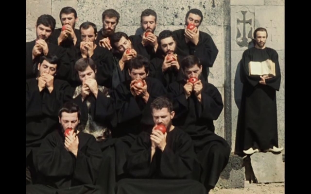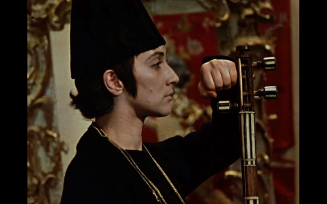 Sergej Paradžanov Nran goujne, SSSR, 1968, 78', 35 mmThe Color of the Pomegranates is a biography of the Armenian troubadour Sayat Nova (King of Song) that reveals the poet's life visually and poetically rather than literally. The film is presented in a form of static tableaux and depicts the poet's coming of age, discovery of the female form, falling in love, entering a monastery and dying, all framed through both Sergei Parajanov's imagination and Sayat Nova's poems. One of the greatest masterpieces of the 20th century.
