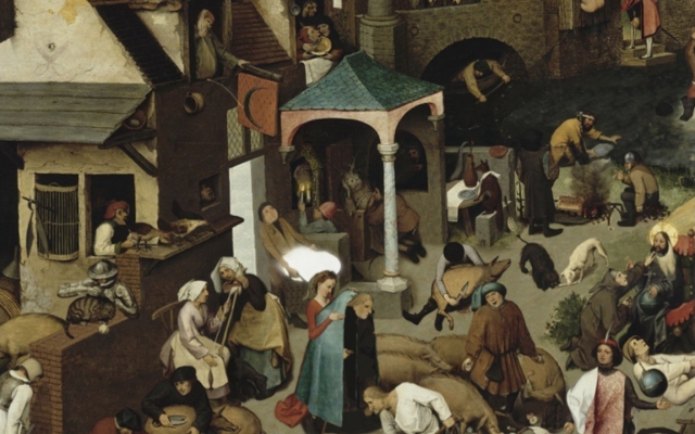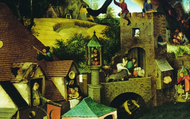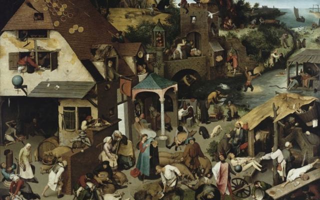 Animated analyze of a painting by Bruegel The Flemish Proverbs where 118 Flemish proverbs take place.