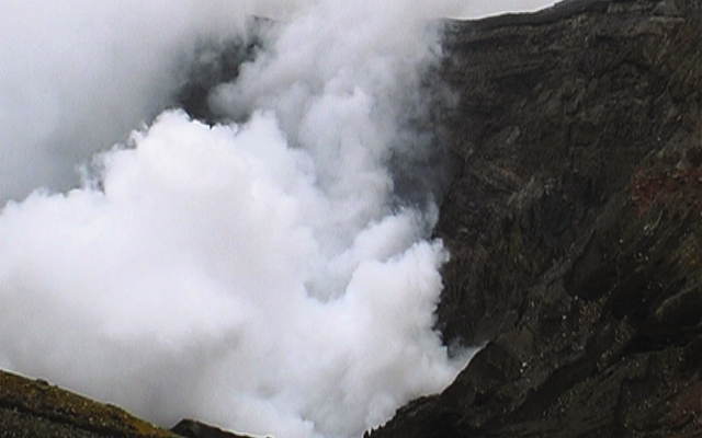 Dva muškarca rade u nadzornoj sobi i prate ponašanje vulkana. Raznovrsna dugmad i kontrolne ploče odaju dojam da bi mogli usklađivati i upravljati prirodnim silama.