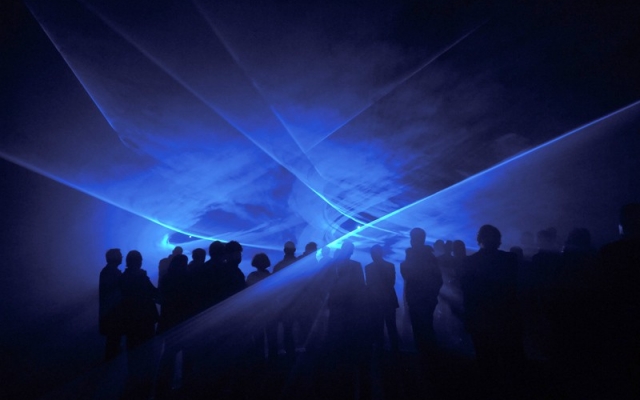 Spajanjem zvuka s vizualizacijama prostorna percepcija zvuka se često umanjuje zbog dvodimenzionalne prirode slike u odnosu na trodimenzionalnu prirodu zvuka. Zahvaljujući laseru, moguć je nastanak promjenjivih trodimenzionalnih okoliša koji okružuju publiku. Slika ovdje nastaje projiciranjem lasera na tanki sloj dima ili magle. Slika i zvuk proizlaze iz istog računalnog izvora u realnom vremenu, što rezultira izvedbom u kojoj zvuk i slika igraju jednako važne uloge. Okoliš poziva publiku na stalnu promjenu perspektive.