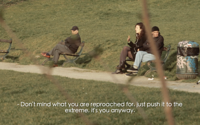 Anna Raimondo Encouragements, BE, 2014, 9', HD videoPrikupivši ohrabrenja žena razne dobi, podrijetla i seksualnog i vjerskog opredjeljenja, umjetnica šeće javnim prostorom Bruxellesa i koristi se tim tekstovima u imaginarnom telefonskom razgovoru. Na taj način otjelovljuje oblik ženske solidarnosti, kontaminirajući gradski prostor osobnim i kolektivnim iskustvima.