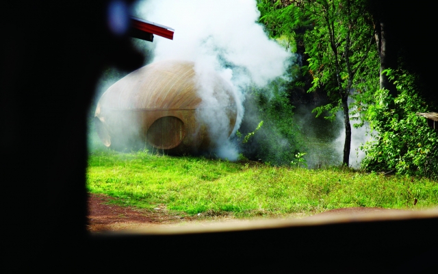 Apichatpong Weerasethakul A Letter to Uncle Boonmee, UK, 2009, 18', SD videoPrije nekoliko godina jedan mi je redovnik dao knjižicu pod nazivom Čovjek koji se može sjetiti svojih prošlih života. U njoj je pisao o Boonmeeu, koji se mogao sjetiti prošlih života u raznim gradovima na sjeveroistoku. Godine 2008. počeo sam putovati tim predjelom u potrazi za njegovim preživjelim potomcima i rodbinom. Upoznao sam njegova dva sina koji su mi pričali o njemu. U prosincu 2008. u Nabui sam pronašao nekoliko kuća prikladnih za Boonmeeovu kuću u budućem dugometražnom filmu. Ovaj kratki film osobno je pismo u kojem ujaku Boonmeeu opisujem svoju Nabuu. Film se sastoji od večernjih kadrova interijera kuća. Sve su napuštene osim jedne kuće sa skupinom mladih vojnika, koje glume tinejdžeri iz Nabue. Dvojica od njih predstavljaju mene u ulozi pripovjedača. (Apichatpong Weerasethakul)