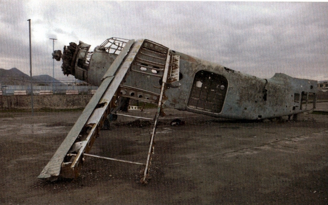 Lida Abdul In Transit, AT, AF, 2008, 5', SD videoOvaj rad se događa na rubovima Kabula, gdje je krajolik onečišćen ostacima 20-godišnjih ratova i uništavanja zemlje bombardiranjem. Nije neobično vidjeti djecu da se igraju s olupinama aviona i spremnika koji leže kao s neba oborene ptice. Prisutnost tih metalnih divova je stravična, jer je na neki način i simbol prisutnosti fizičkih i psihičkih ratnih trauma koje već gotovo tri desetljeća određuju povijest Afganistana. (Lida Abdul)