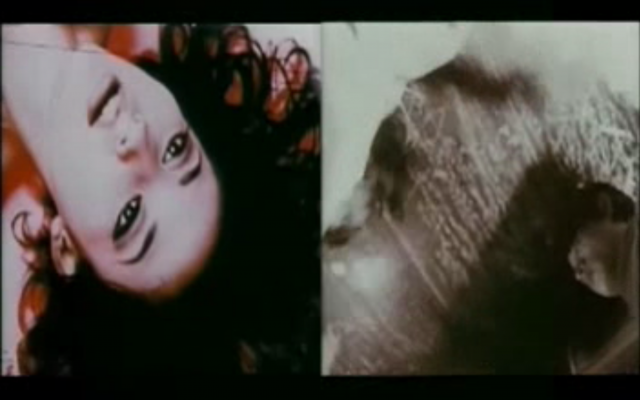 Toshio Matsumoto Tsuburekakatta migime no tame ni, JP, 1968, 13', 3 x 16 mmZa moje skršeno desno oko prošireni je, trostruki 16 mm film Toshia Matsumota čije se dvije projicirane slike dodiruju bočno, a treća ih preklapa proizvodeći tektonski stroj za "slutnje o znatno većim kretanjima u Zemljinoj kori, vrijednostima i modusima percepcije svijeta koje će potkopati samu modernu," rekao je. Taj trokut skršene slike Matsumoto je napravio 1968. u produkciji Art Theatre Guilda, utjecajne organizacije za razvoj japanskog nezavisnog i underground filma, kao i svoj prvi igrani film Pogrebna procesija ruža s kojim dijeli snimljeni materijal i anti-edipsku temu u naslovu, dekonstrukciju frojdovskog Edipa ili organizacije žudnje kroz obiteljsku strukturu (japanskog) kapitalizma. Montažni delirij pop-glazbe re-komponira autoreferencijalno lice revolucionarnog doba distanciranim slutnjama velikih društveno-političkih transformacija, studentske borbe protiv američko-japanskog ugovora o sigurnosti, aktualno-fikcijskog portreta japanskih gay i underground ekscesa - lice skršenog desnog oka. (Tanja Vrvilo)
