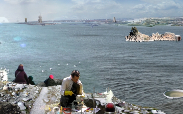 Kamera panoramski klizi preko digitalno montirane obale sačinjene od umetnutih radnji iz svakodnevice. Pregledavamo vizionarske, mistične i poetične prizore iz luke koji odaju dojam žive i suvremene slike Hieronymusa Boscha.